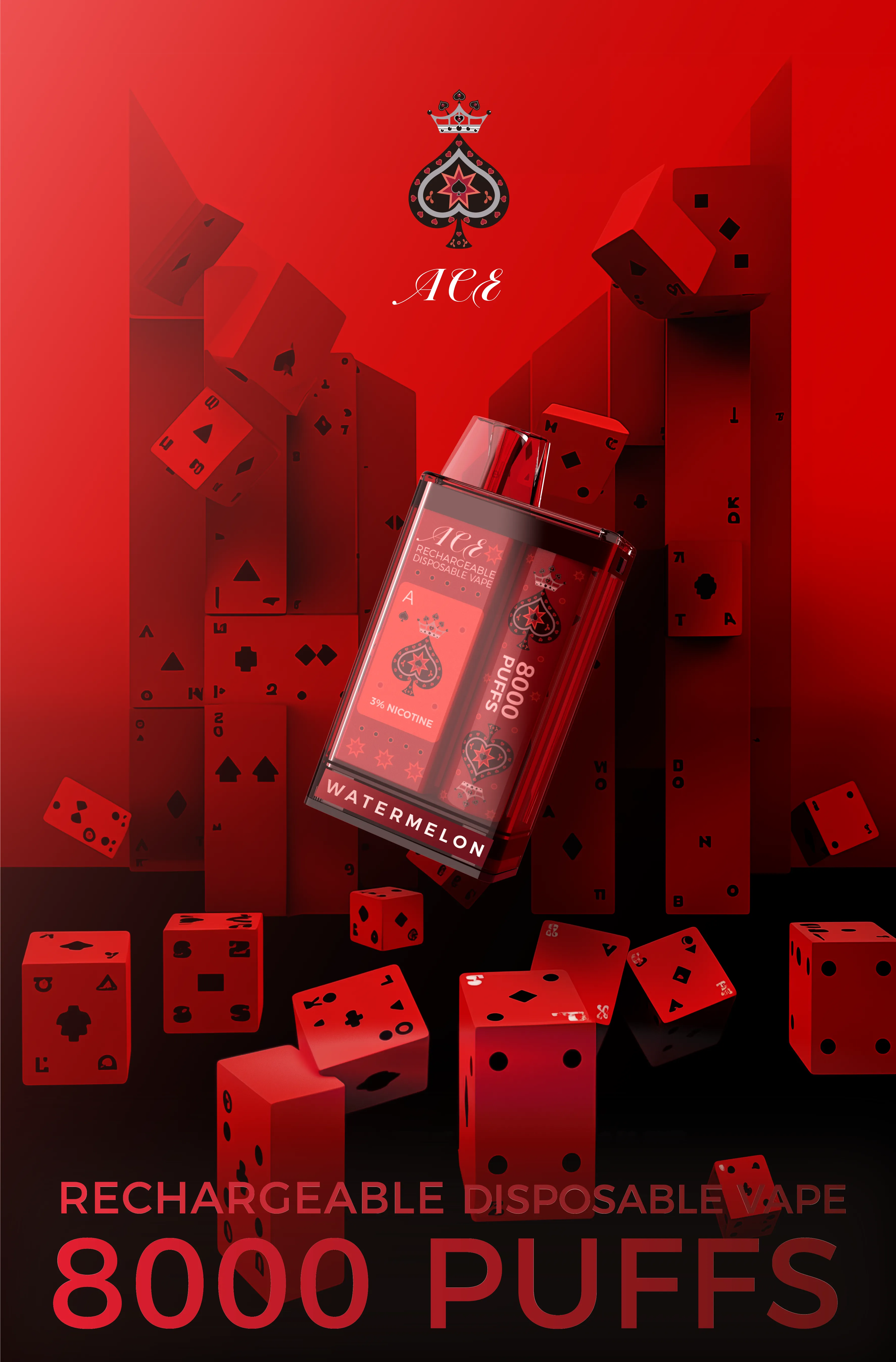 Deal yourself a winning hand with the ACE Rechargeable Disposable Vape. Combining a distinct playing-card aesthetic with high-performance vaping technology, the ACE device is designed for those who demand both style and longevity.