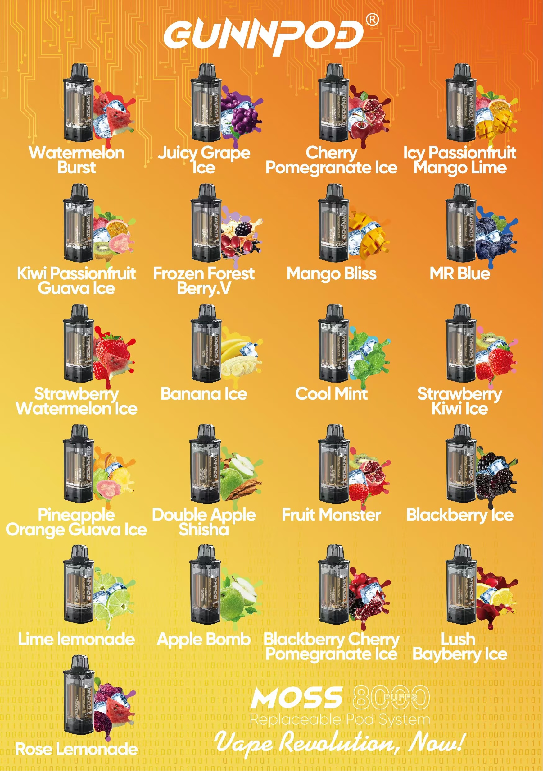 The Gunnpod Moss 1.0 blends the convenience of a disposable with the sustainability of a rechargeable pod system. Featuring a sleek reusable battery and high-capacity 8000-puff pods, it’s designed for long-lasting performance while reducing waste and cost.